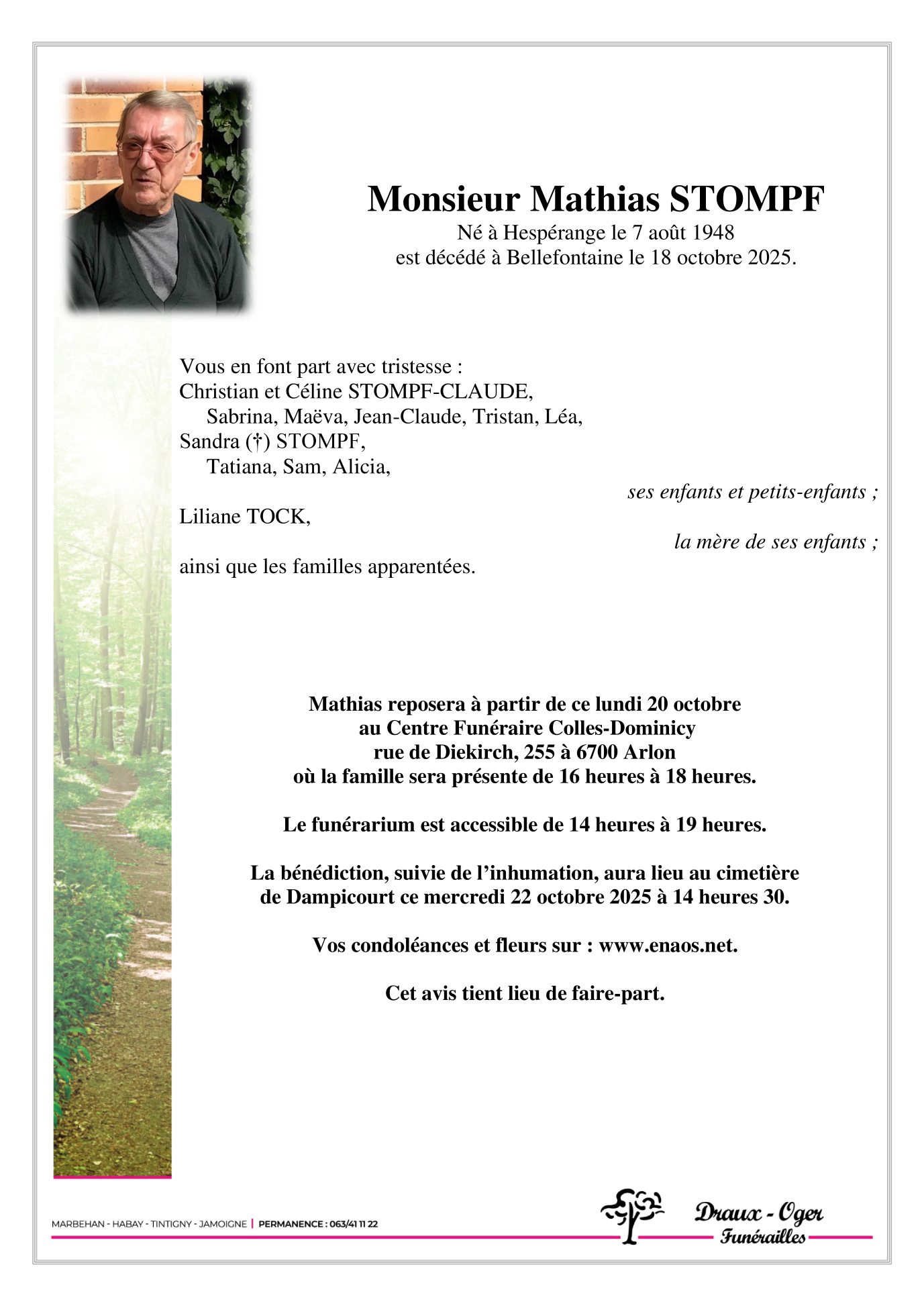 Overleden te Bellefontaine (Lux.) (6730) op zaterdag 18 oktober 2025 op 77-jarige leeftijd