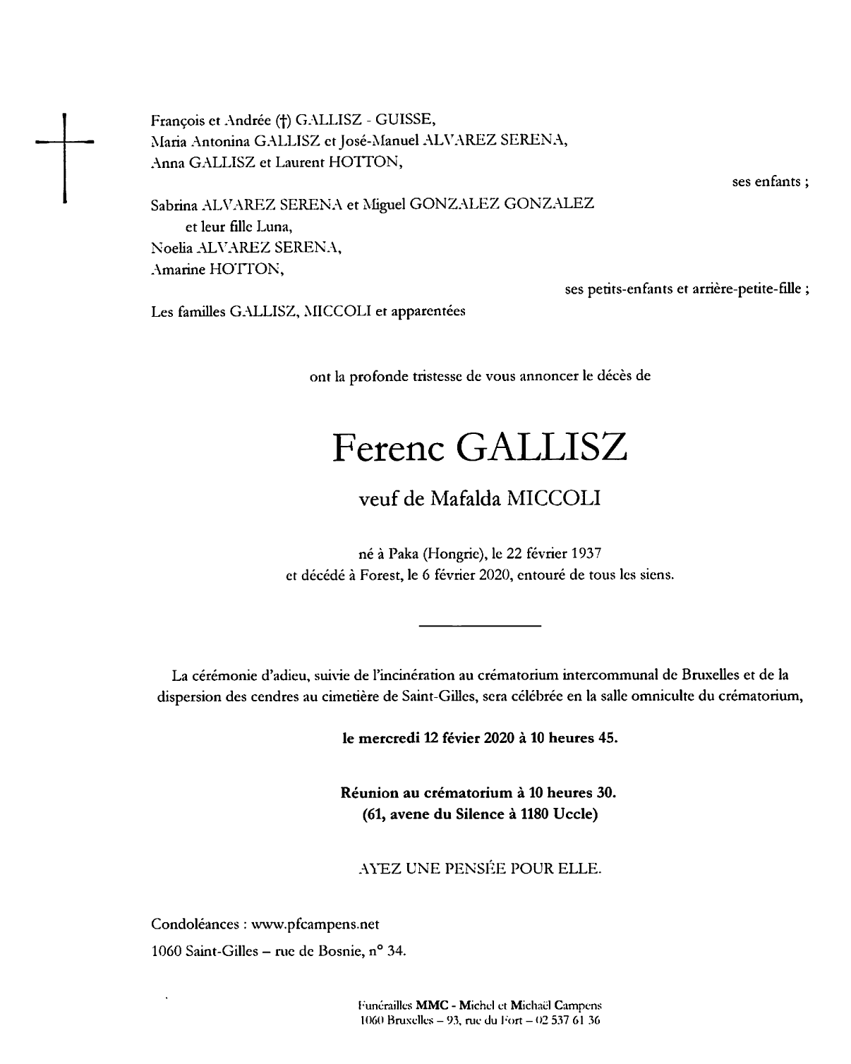 Overleden te Forest (1190) op donderdag 6 februari 2020 op 82-jarige leeftijd