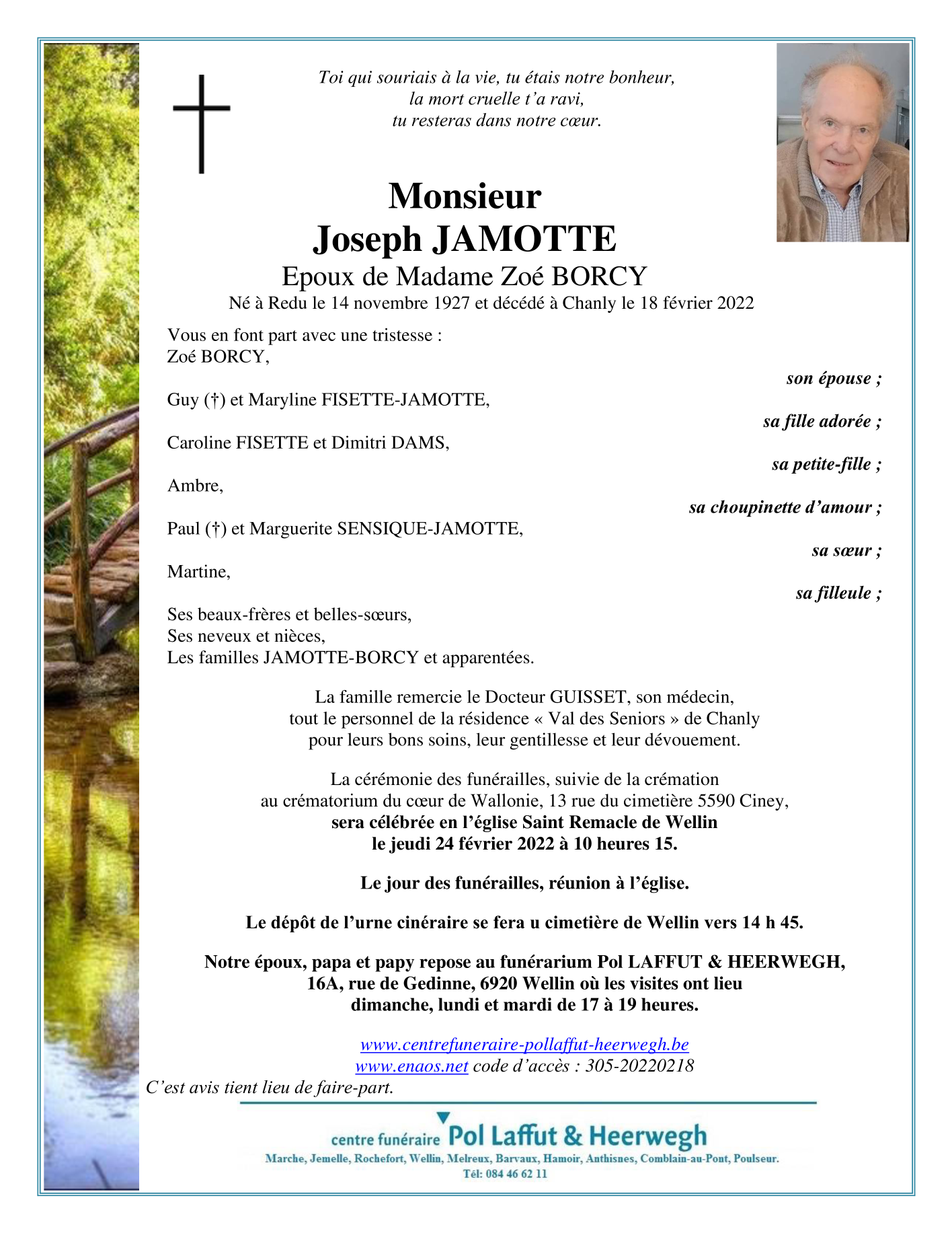 Décédé à Chanly (6921) le vendredi 18 février 2022 à l'âge de 94 ans