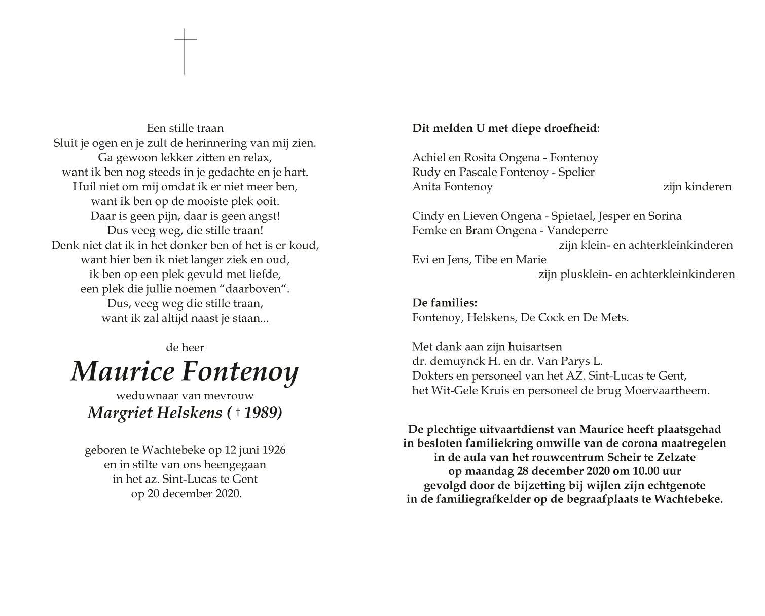 Décédé à Gent (9000) le dimanche 20 décembre 2020 à l'âge de 94 ans
