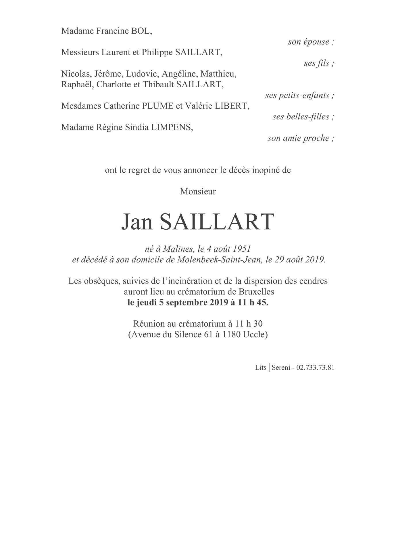 Monsieur Jan SAILLART