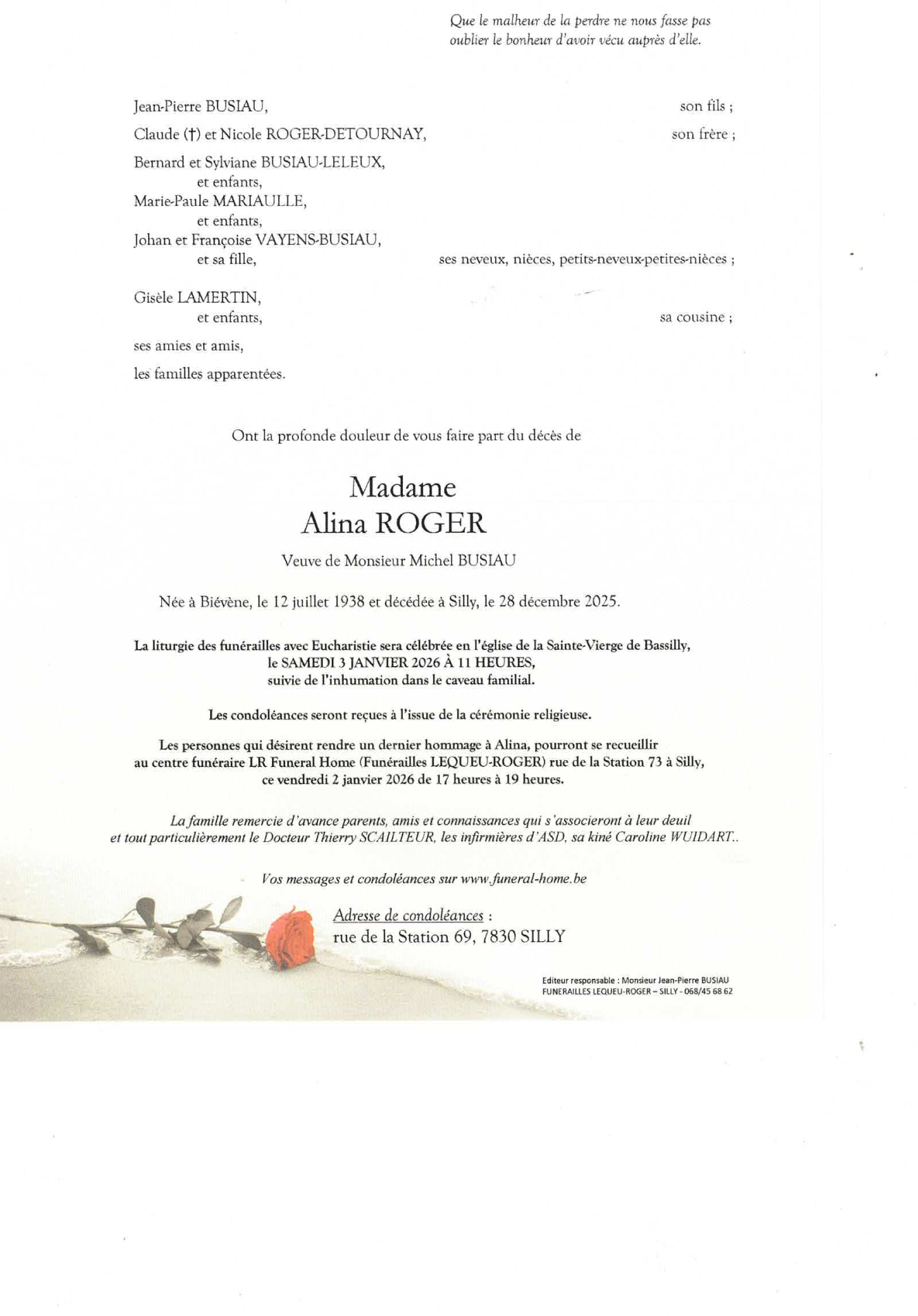 Veuve de Monsieur Michel BUSIAU