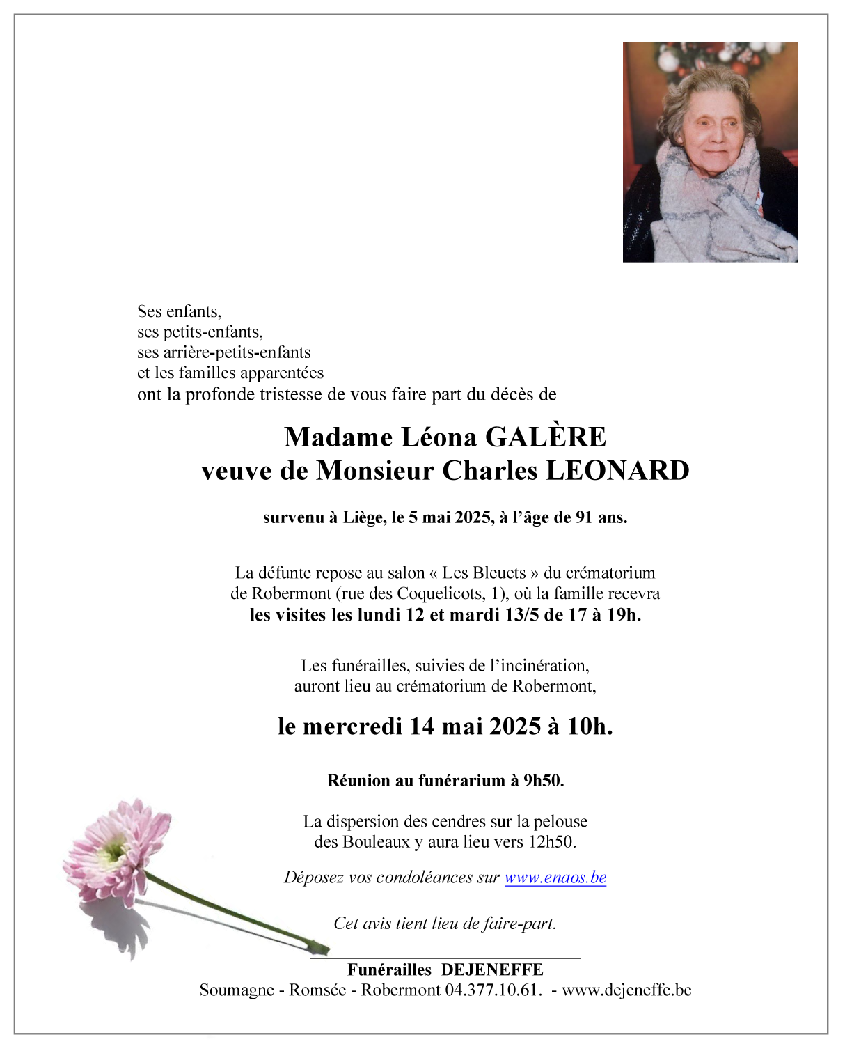 Overleden te Liège (4000) op maandag 5 mei 2025 op 91-jarige leeftijd