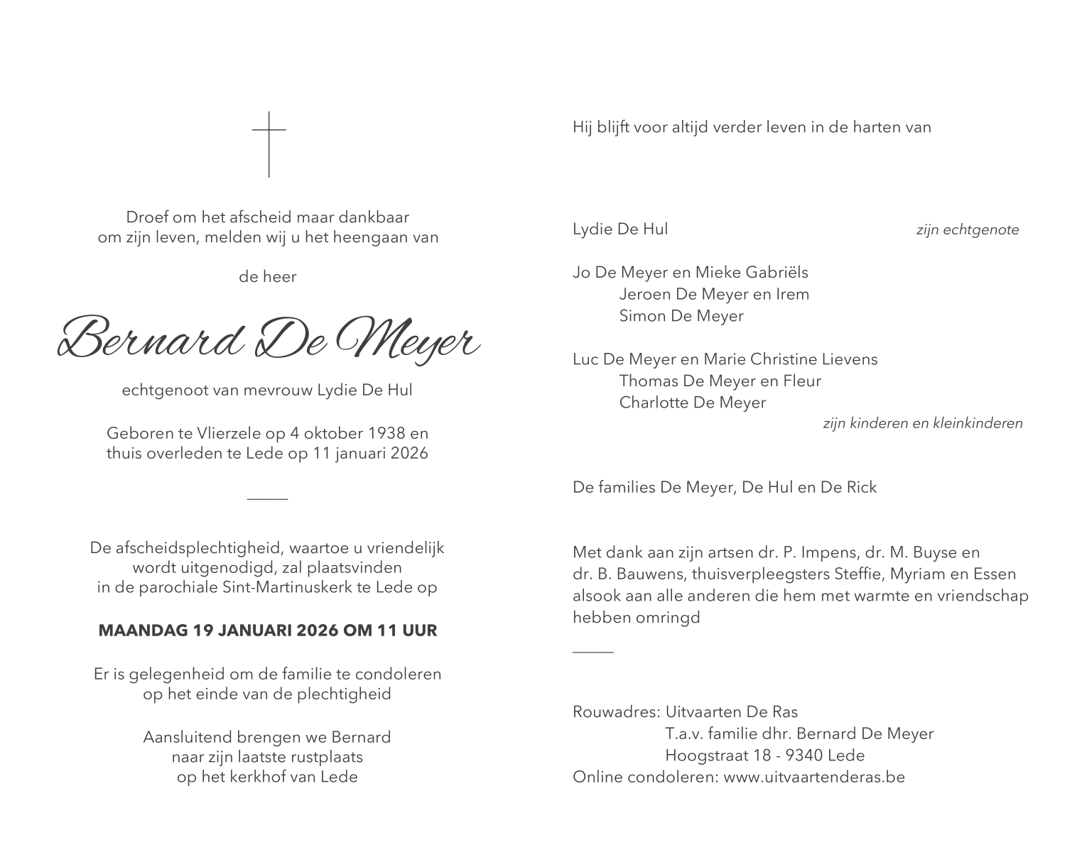 Décédé à Lede (9340) le dimanche 11 janvier 2026 à l'âge de 87 ans