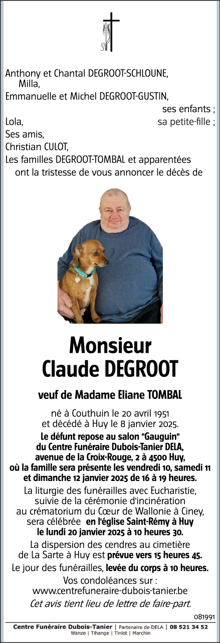 Décédé à Huy (4500) le mercredi 8 janvier 2025 à l'âge de 73 ans