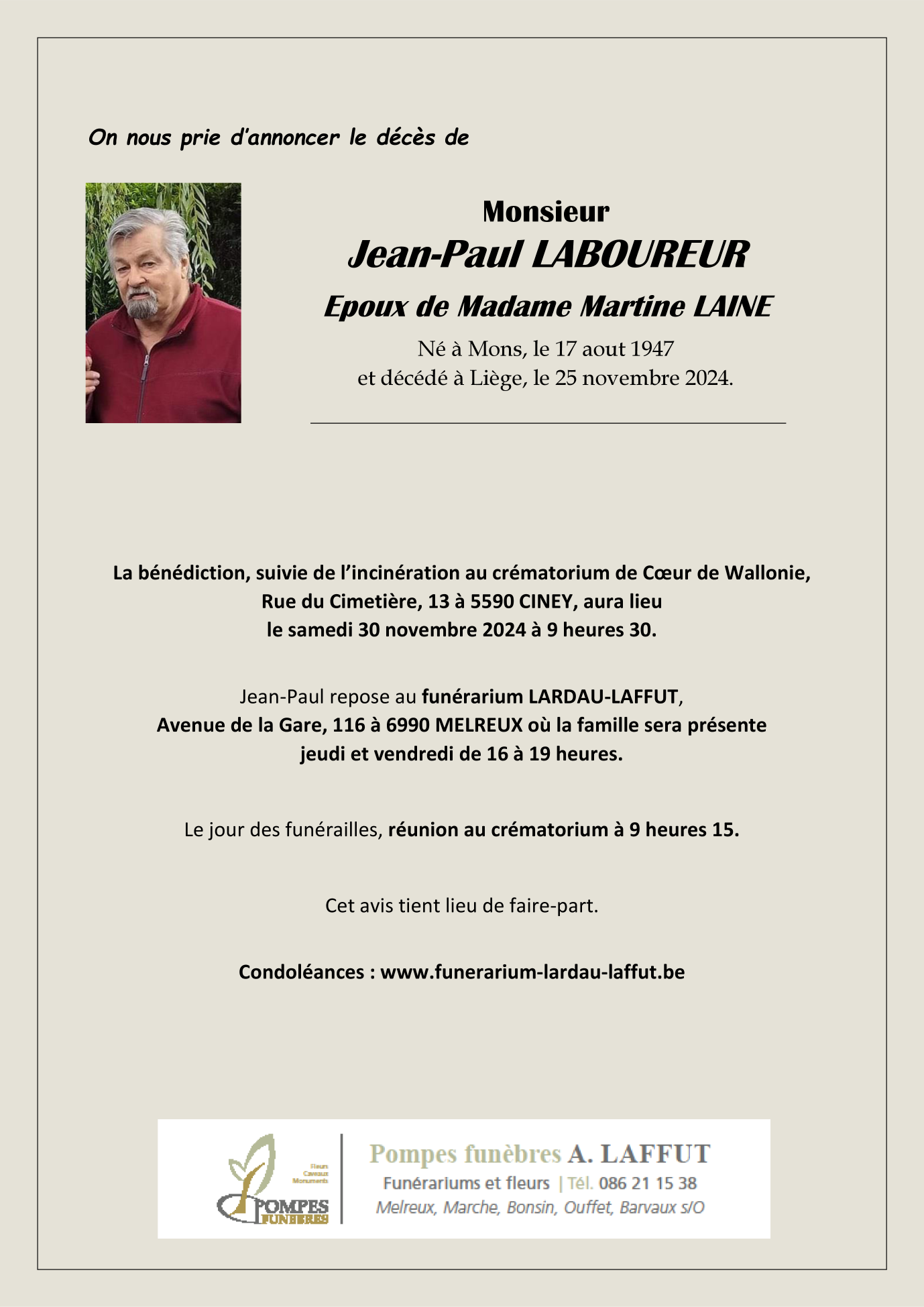 Overleden te Liège (4000) op maandag 25 november 2024 op 77-jarige leeftijd