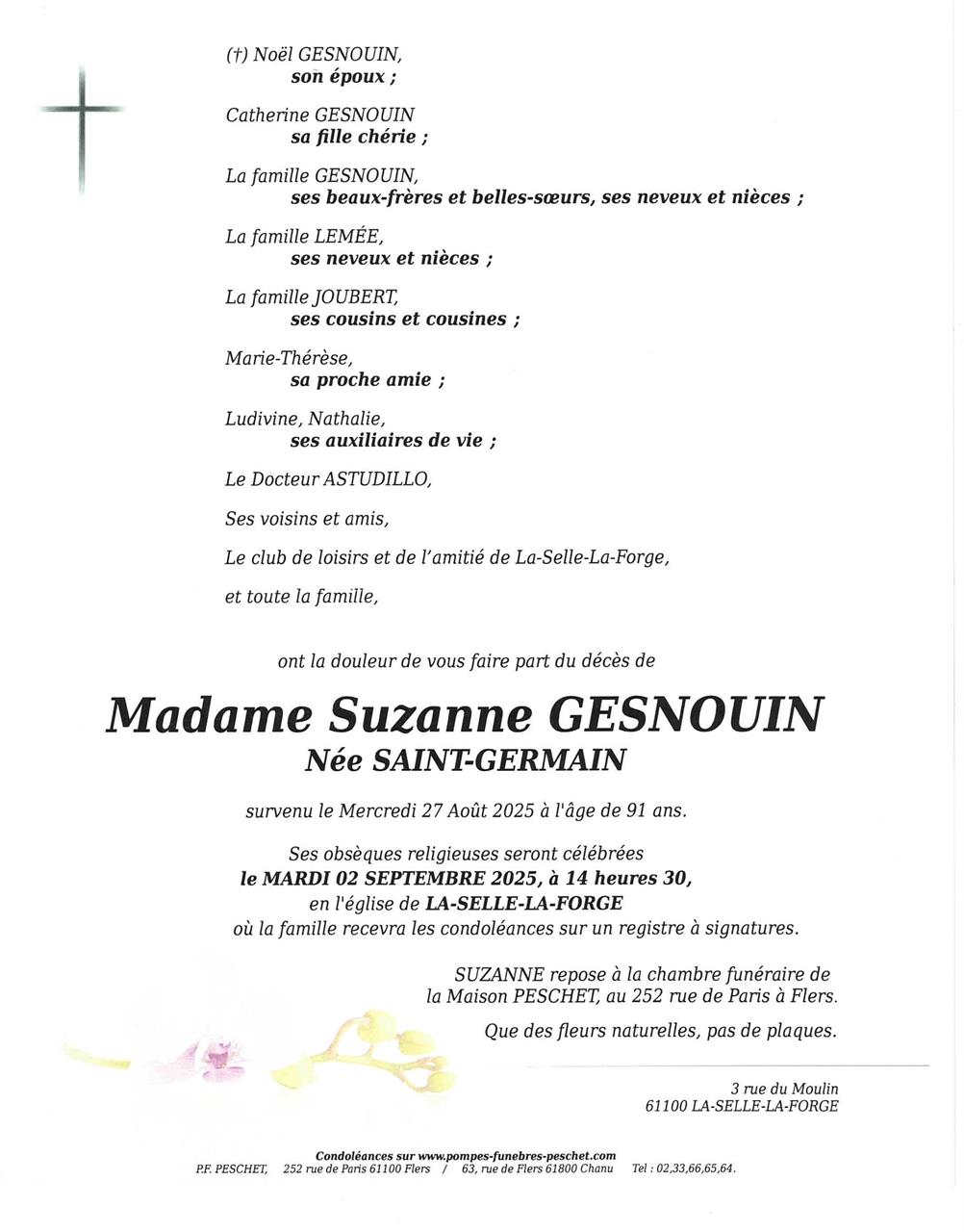 Madame Suzanne GESNOUIN née SAINT-GERMAIN