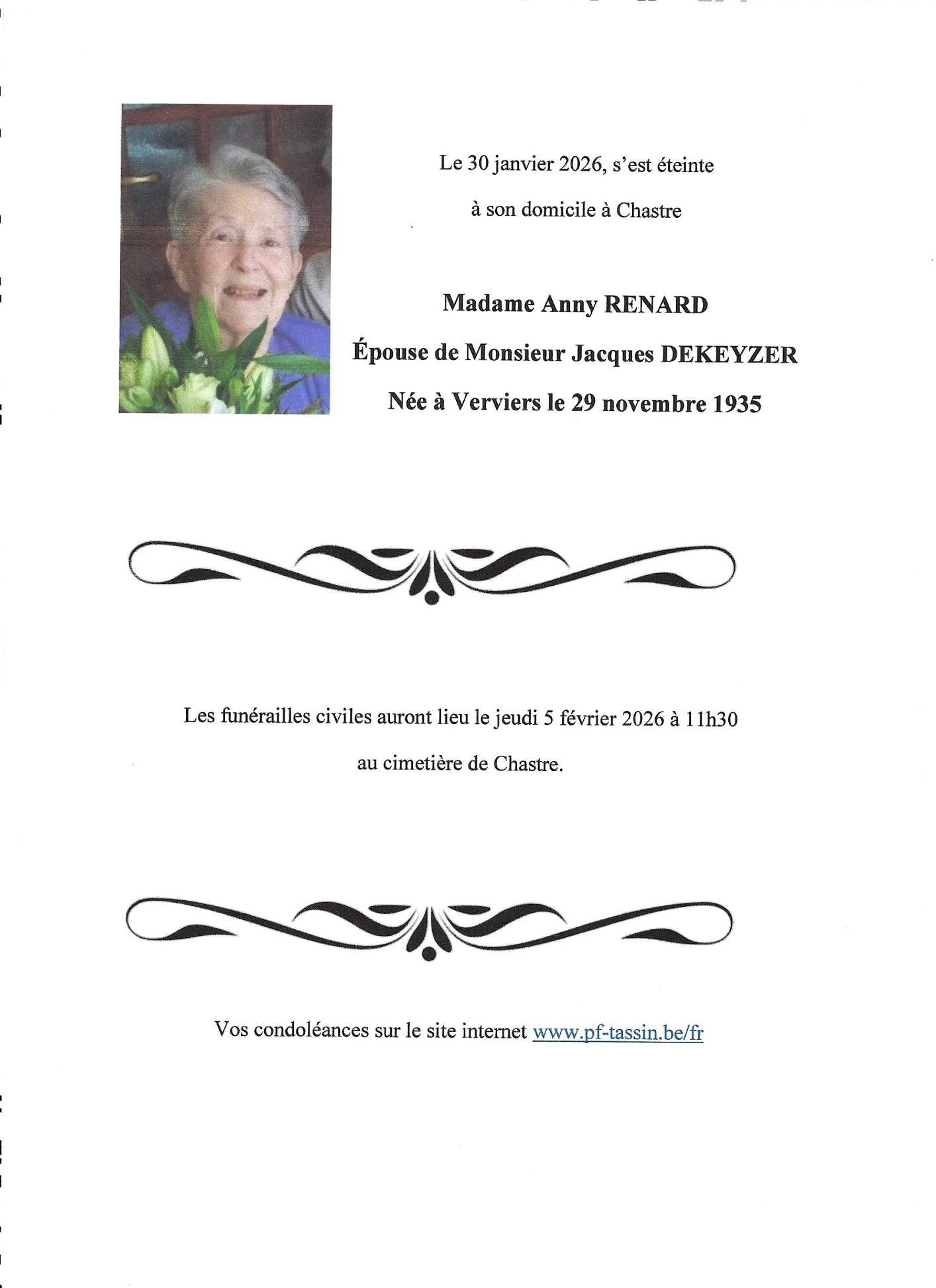 Madame Anny DEKEYZER née RENARD