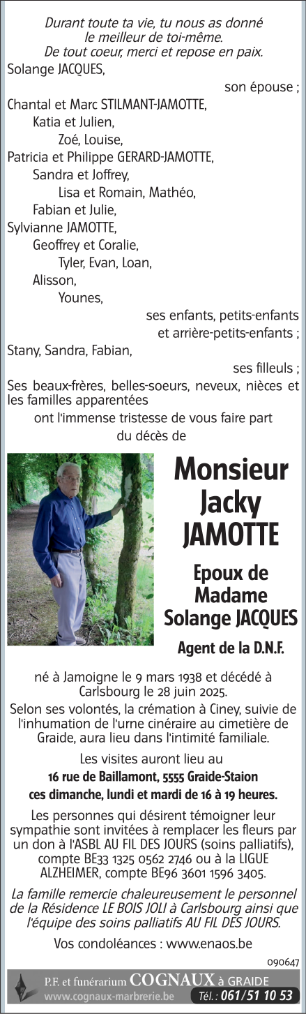 Overleden te Carlsbourg (6850) op zaterdag 28 juni 2025 op 87-jarige leeftijd