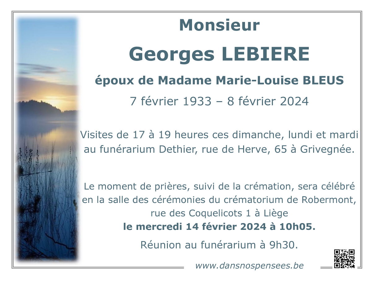 Died in Liège (4000) on 08 February 2024 at the age of 91 years