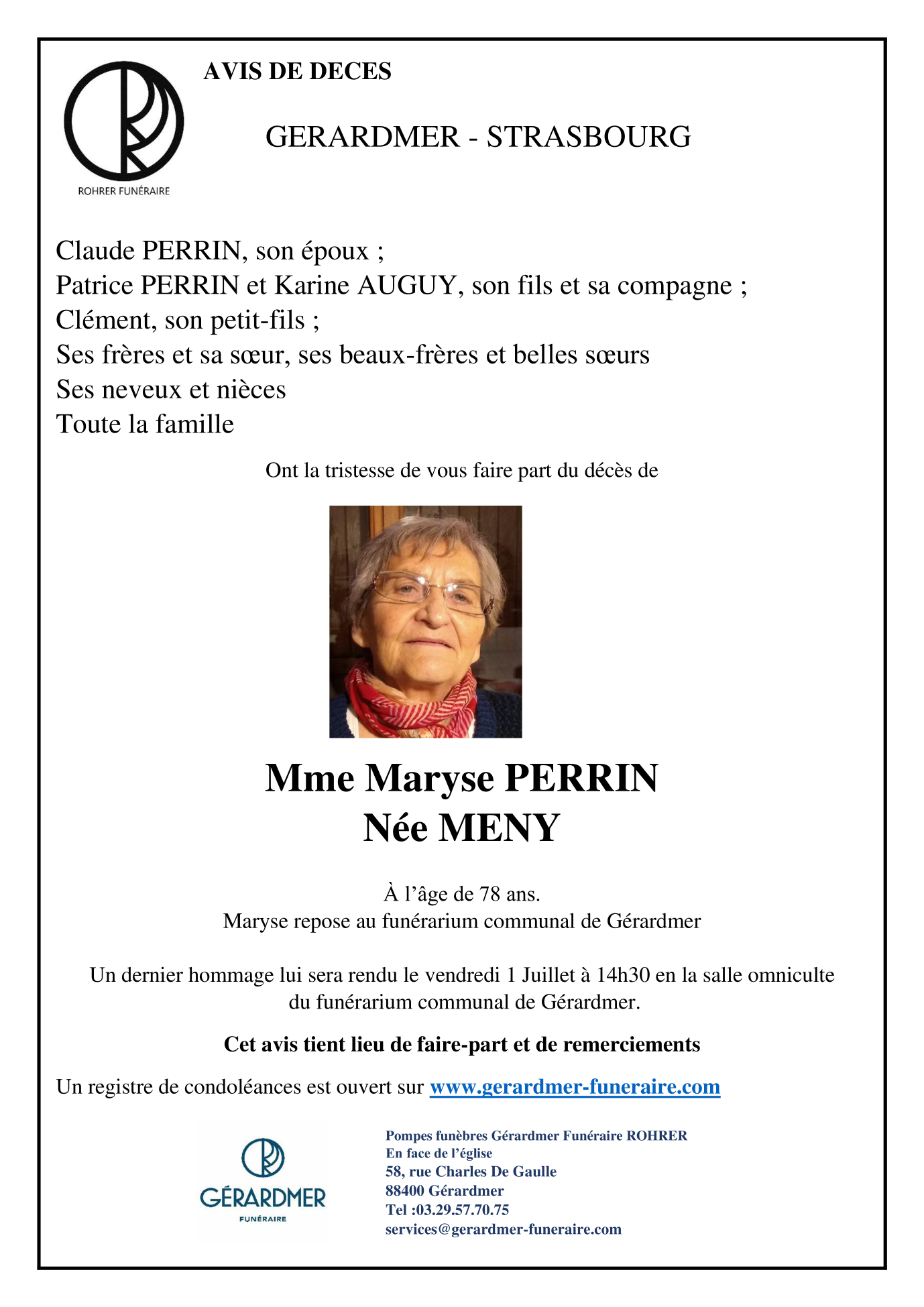 Madame Maryse PERRIN née MENY