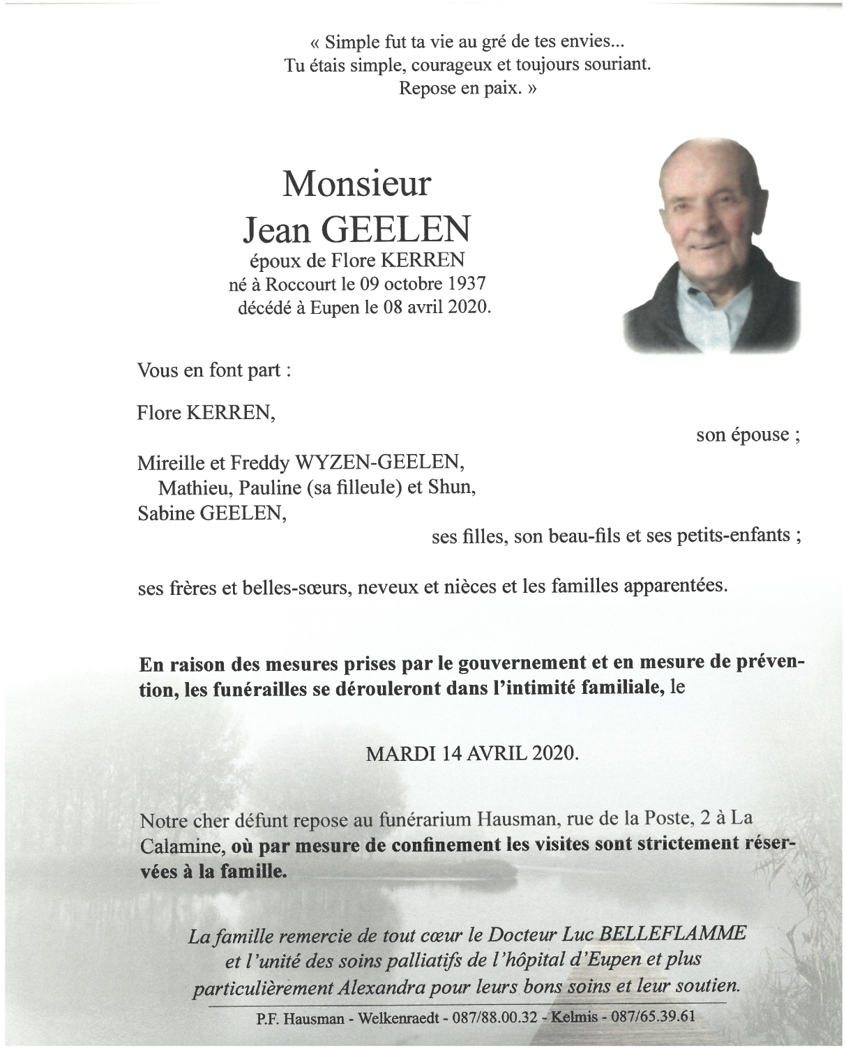 Fallecido en Eupen (4700) el miércoles, 8 de abril de 2020 a la edad de 82 años