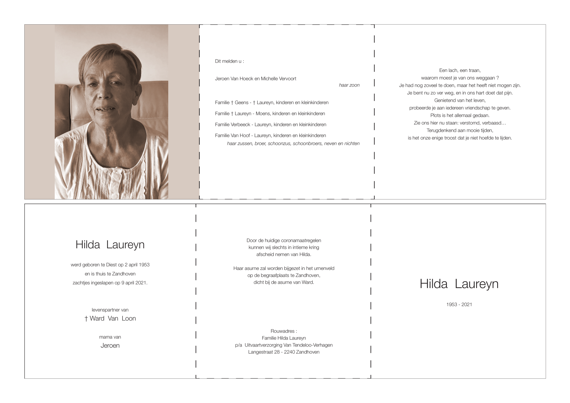 Died in Zandhoven (2240) on 09 April 2021 at the age of 68 years