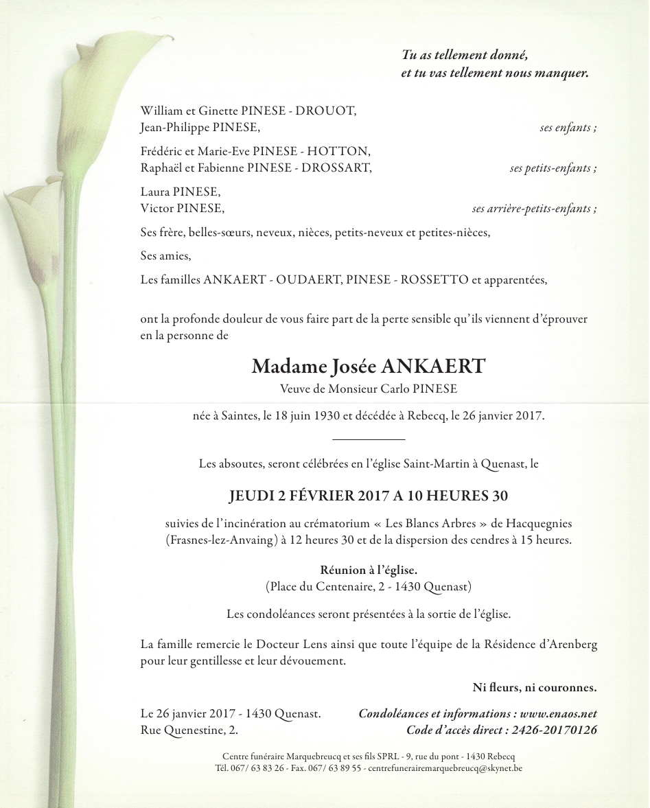 Died in Rebecq (1430) on 26 January 2017 at the age of 86 years