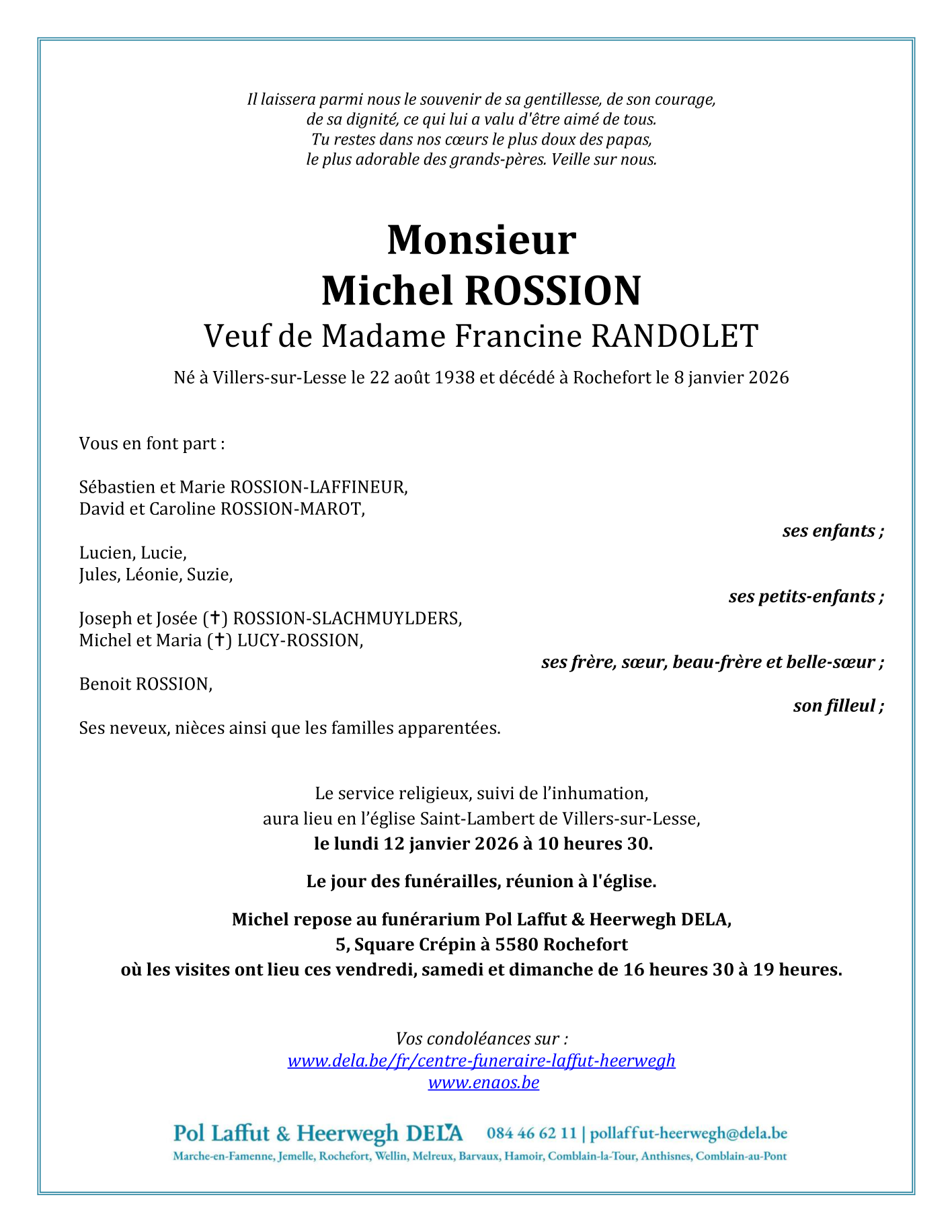 Fallecido en Rochefort (5580) el jueves, 8 de enero de 2026 a la edad de 87 años