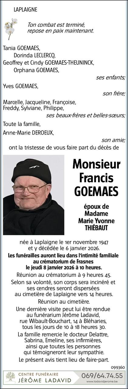 Décédé à Laplaigne (7622) le mardi 6 janvier 2026 à l'âge de 78 ans
