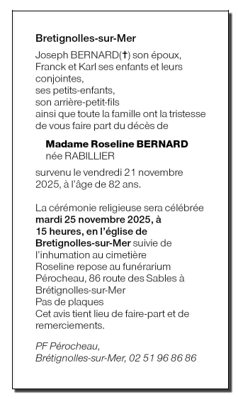Died in Les Sables d'Olonne (85340, France) on 21 November 2025 at the age of 82 years