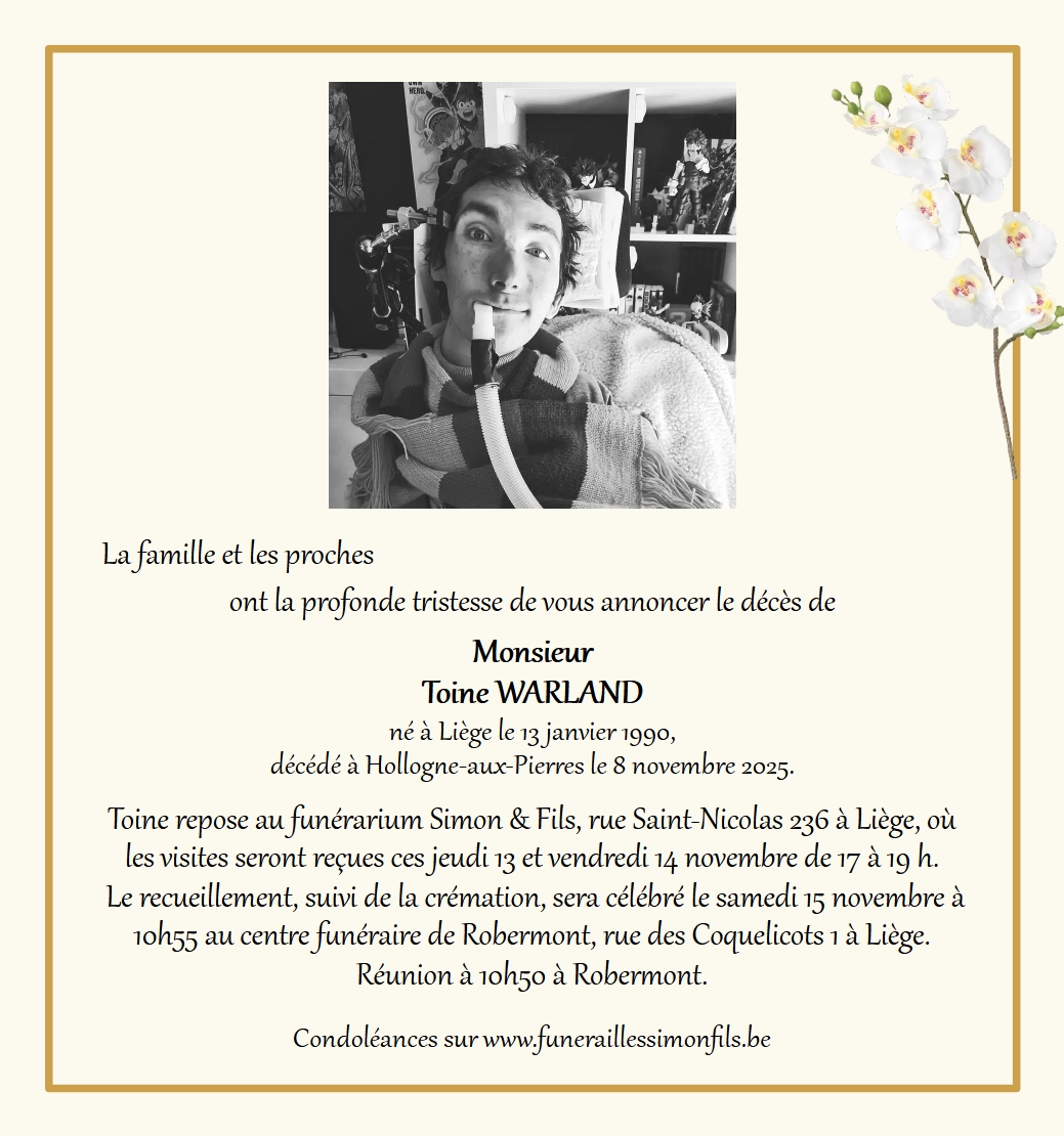 Décédé à Hollogne-aux-Pierres (4460) le samedi 8 novembre 2025 à l'âge de 35 ans