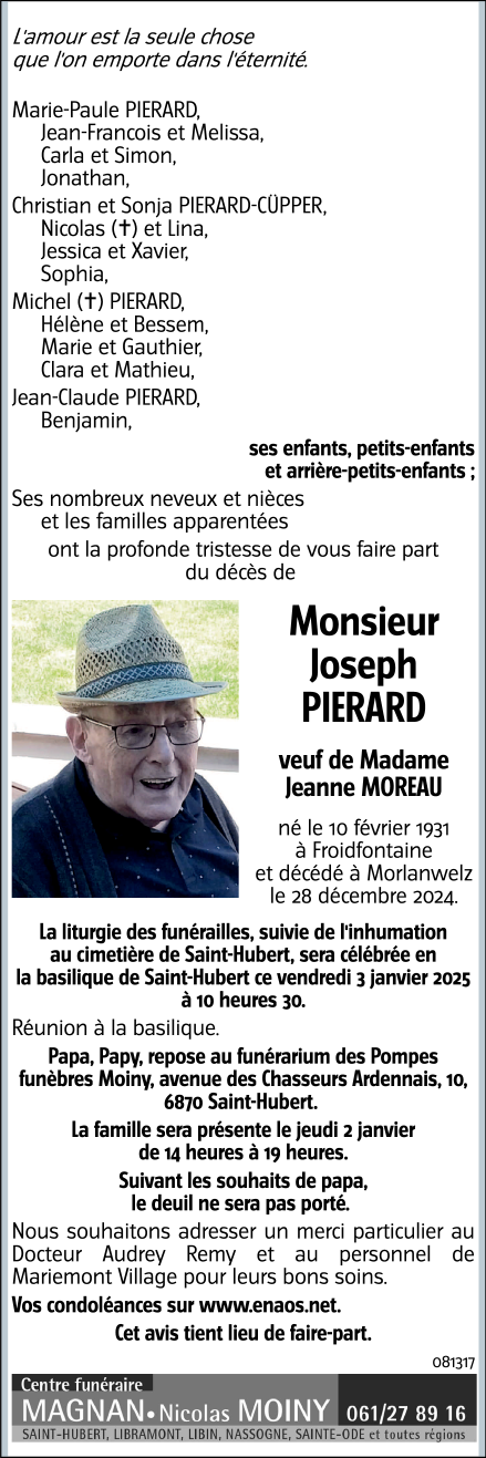 Fallecido en Morlanwelz (7140) el lunes, 30 de diciembre de 2024 a la edad de 93 años