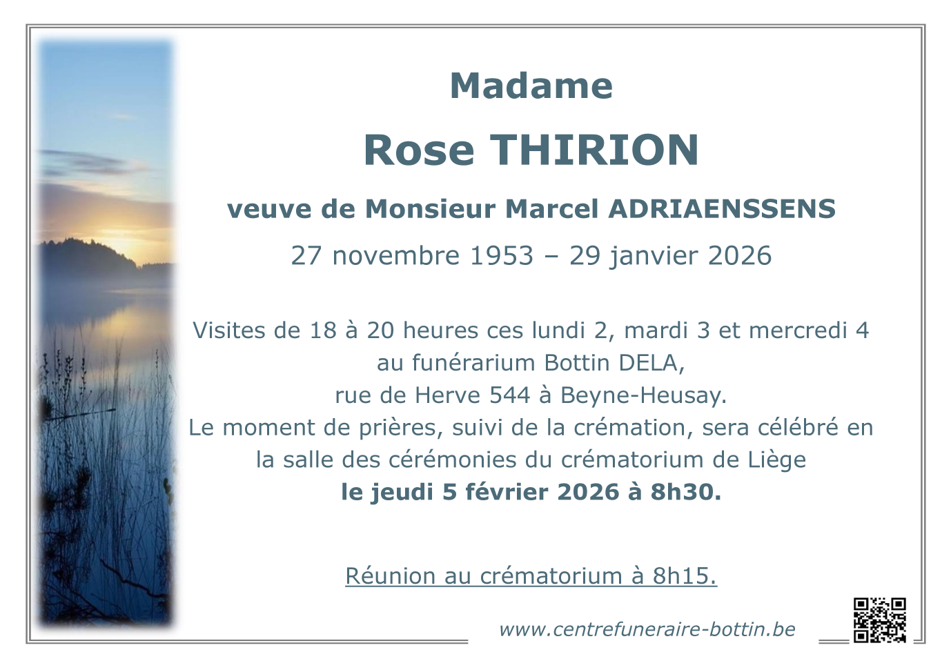 Décédée à Chênée (4032) le jeudi 29 janvier 2026 à l'âge de 72 ans