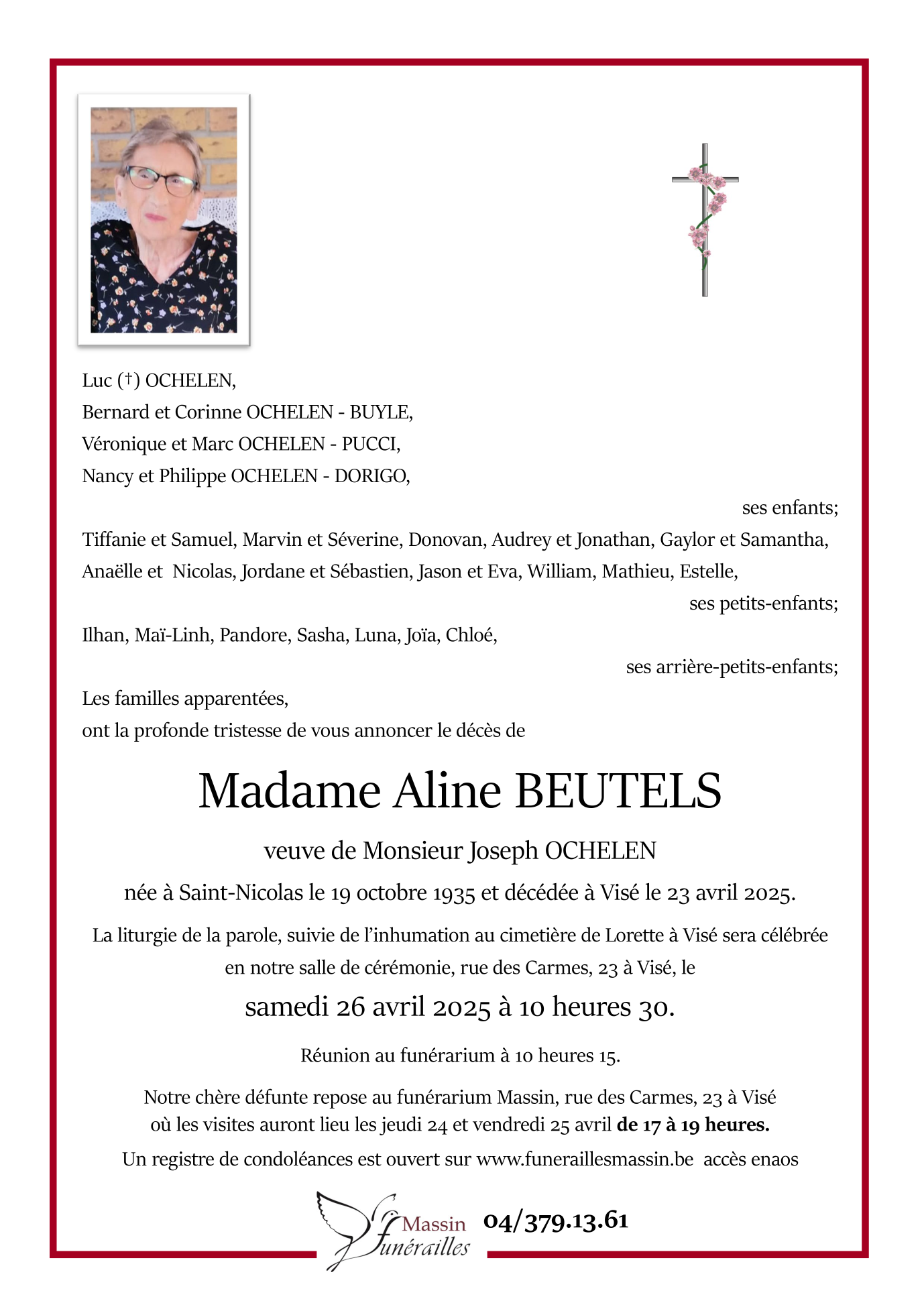 Madame Aline BEUTELS Vve de Joseph OCHELEN