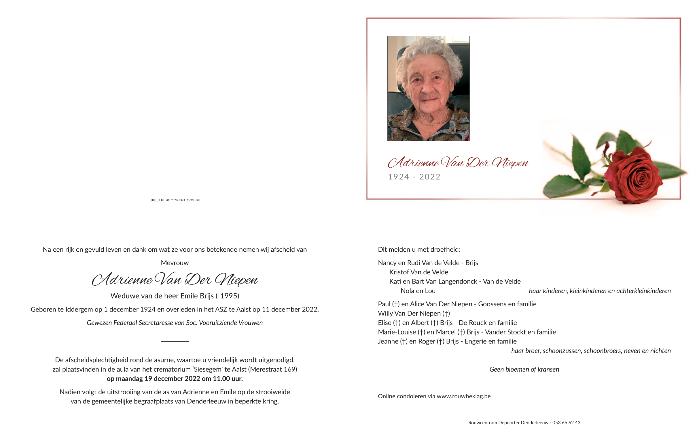 Fallecida en Aalst (9300) el domingo, 11 de diciembre de 2022 a la edad de 98 años