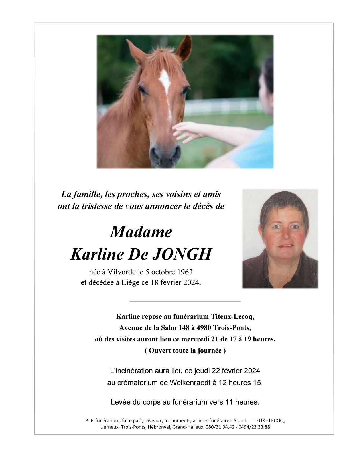 Fallecida en Liège (4000) el domingo, 18 de febrero de 2024 a la edad de 60 años