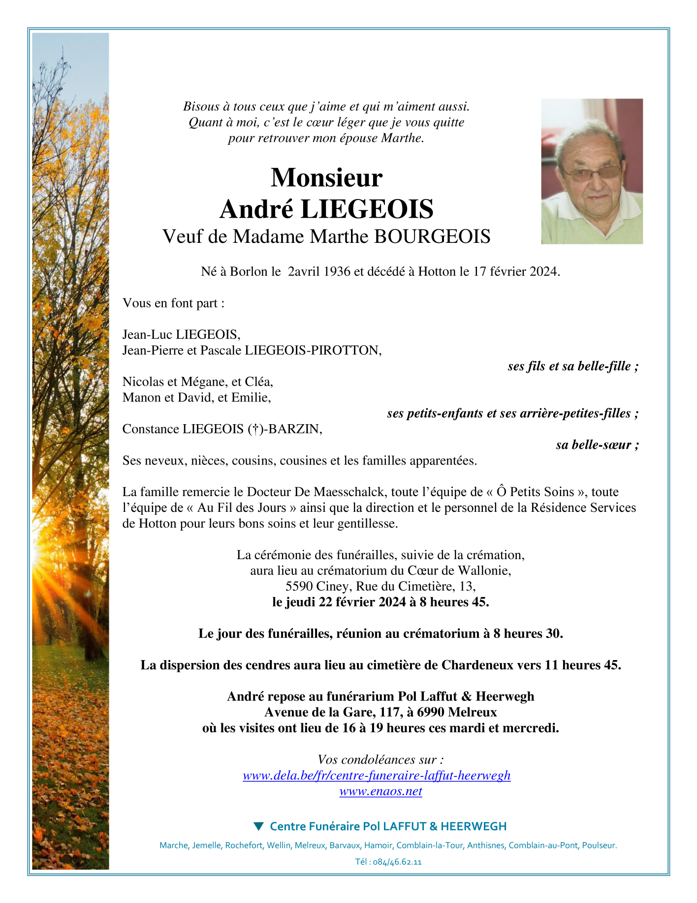 Overleden te Hotton (6990) op zaterdag 17 februari 2024 op 87-jarige leeftijd