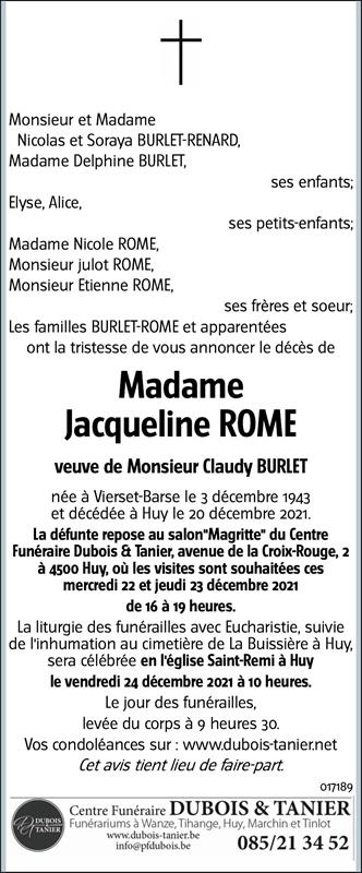 Fallecida en Huy (4500) el lunes, 20 de diciembre de 2021 a la edad de 78 años