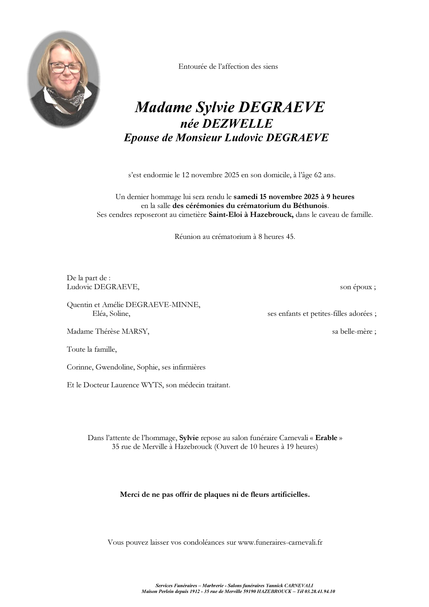 Madame Sylvie DEGRAEVE née DEZWELLE