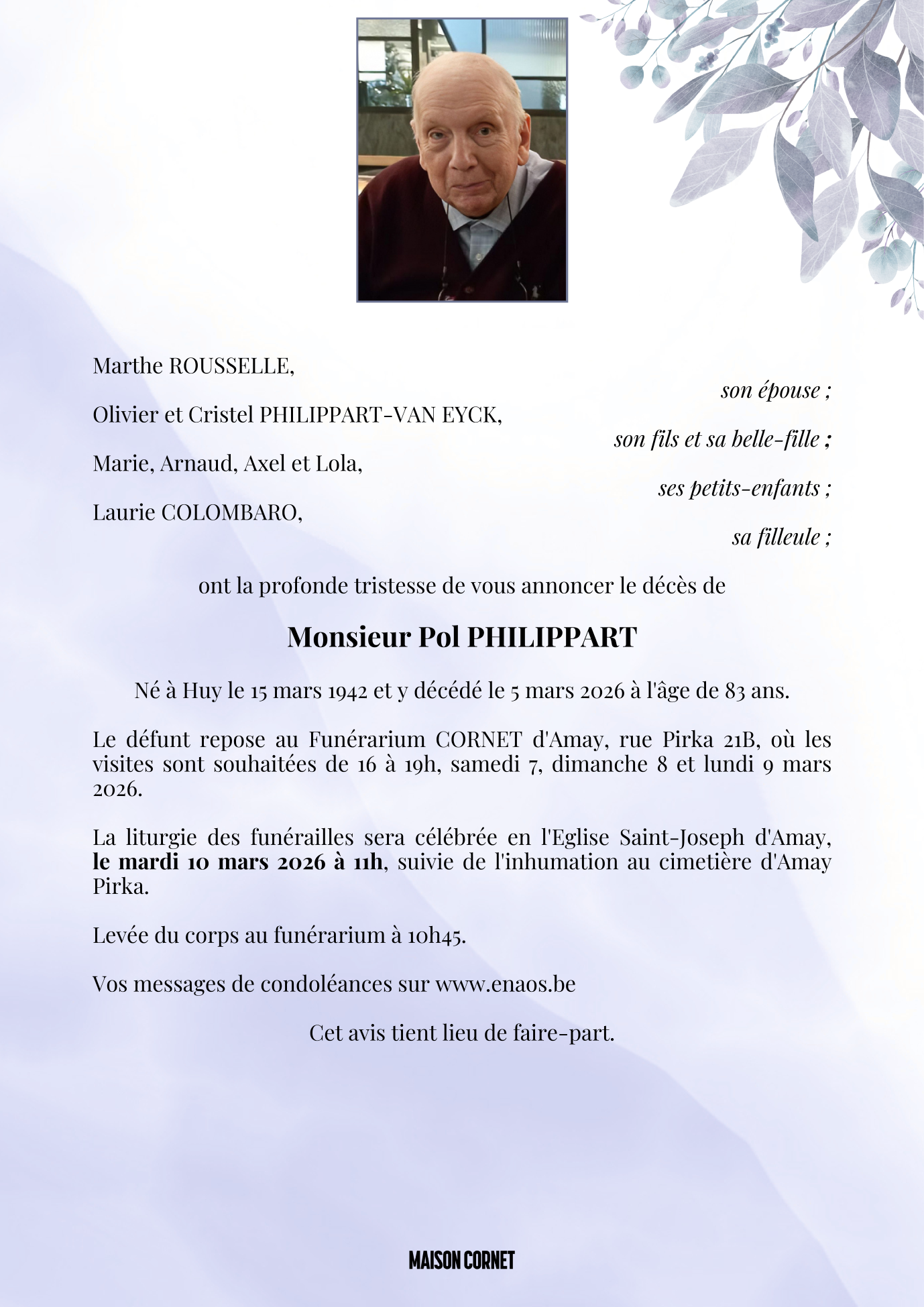 Décédé à Huy (4500) le jeudi 5 mars 2026 à l'âge de 83 ans