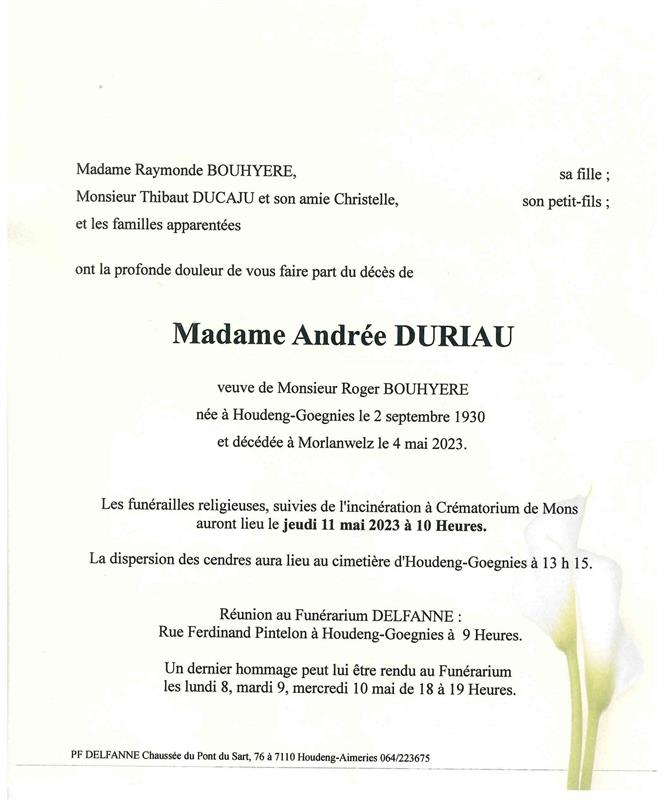 Overleden te Morlanwelz (7140) op donderdag 4 mei 2023 op 92-jarige leeftijd
