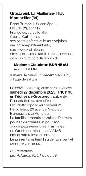 Madame Claudette BURNEAU née ROBELIN