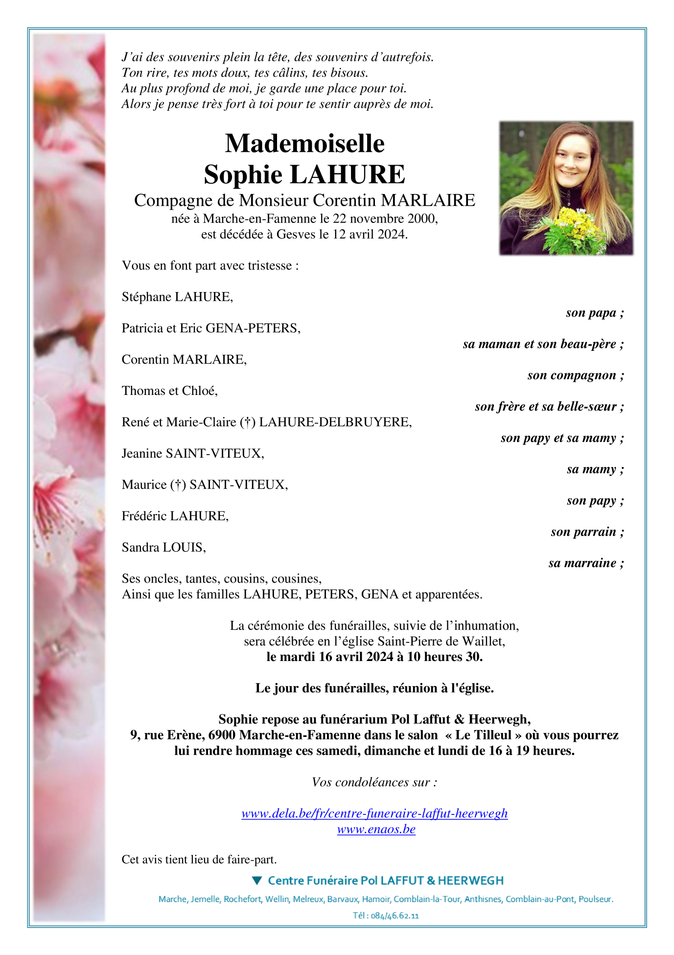 Died in Gesves (5340) on 12 April 2024 at the age of 23 years