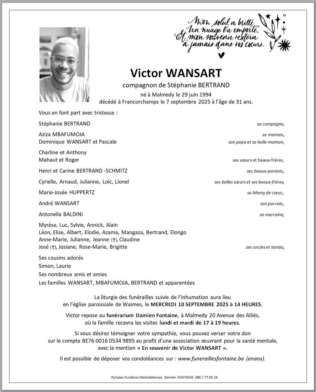 Décédé à Francorchamps (4970) le dimanche 7 septembre 2025 à l'âge de 31 ans
