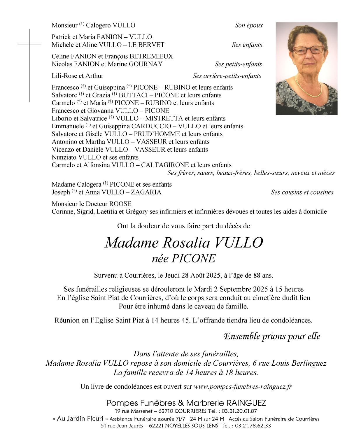 Fallecida en Courrières (62710, Francia) el jueves, 28 de agosto de 2025 a la edad de 88 años