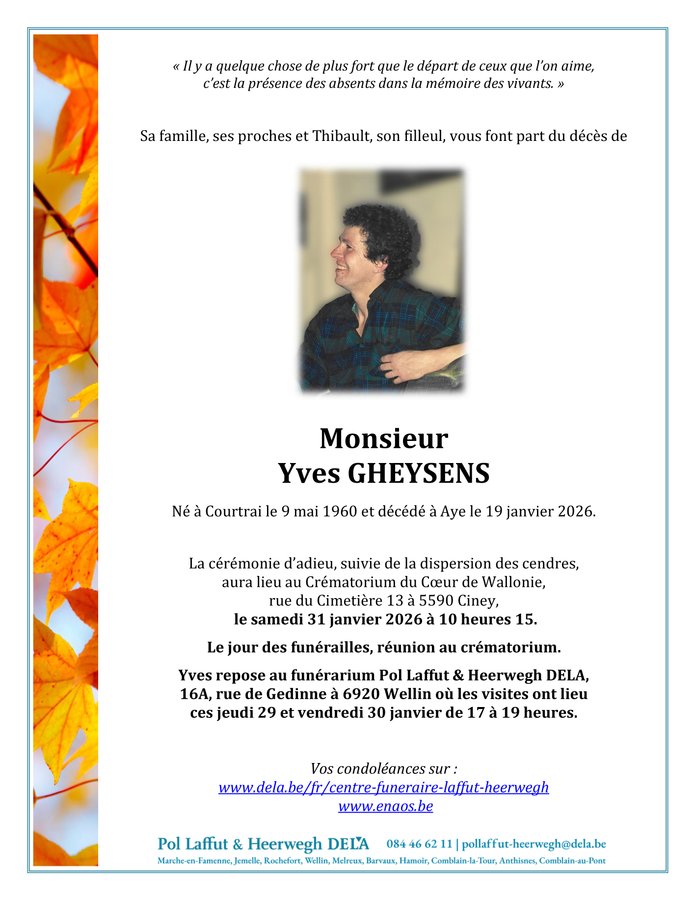 Overleden te Aye (6900) op maandag 19 januari 2026 op 65-jarige leeftijd