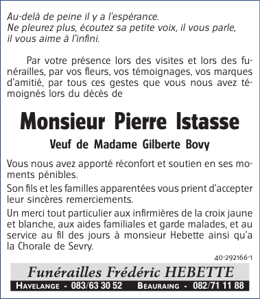 Fallecido en Froidlieu (6920) el martes, 20 de marzo de 2018 a la edad de 91 años