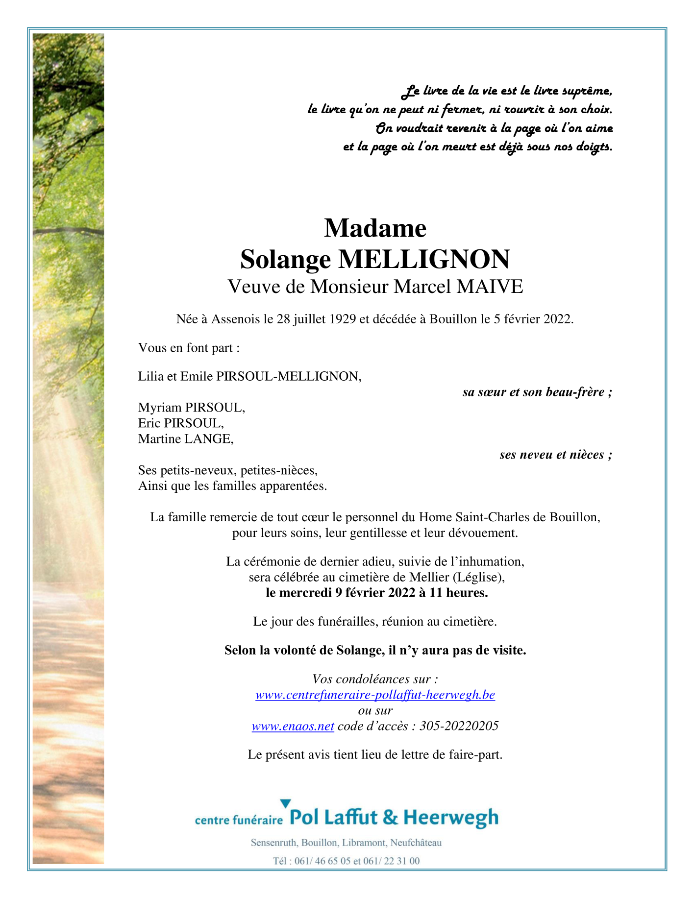 Died in Bouillon (6830) on 05 February 2022 at the age of 92 years