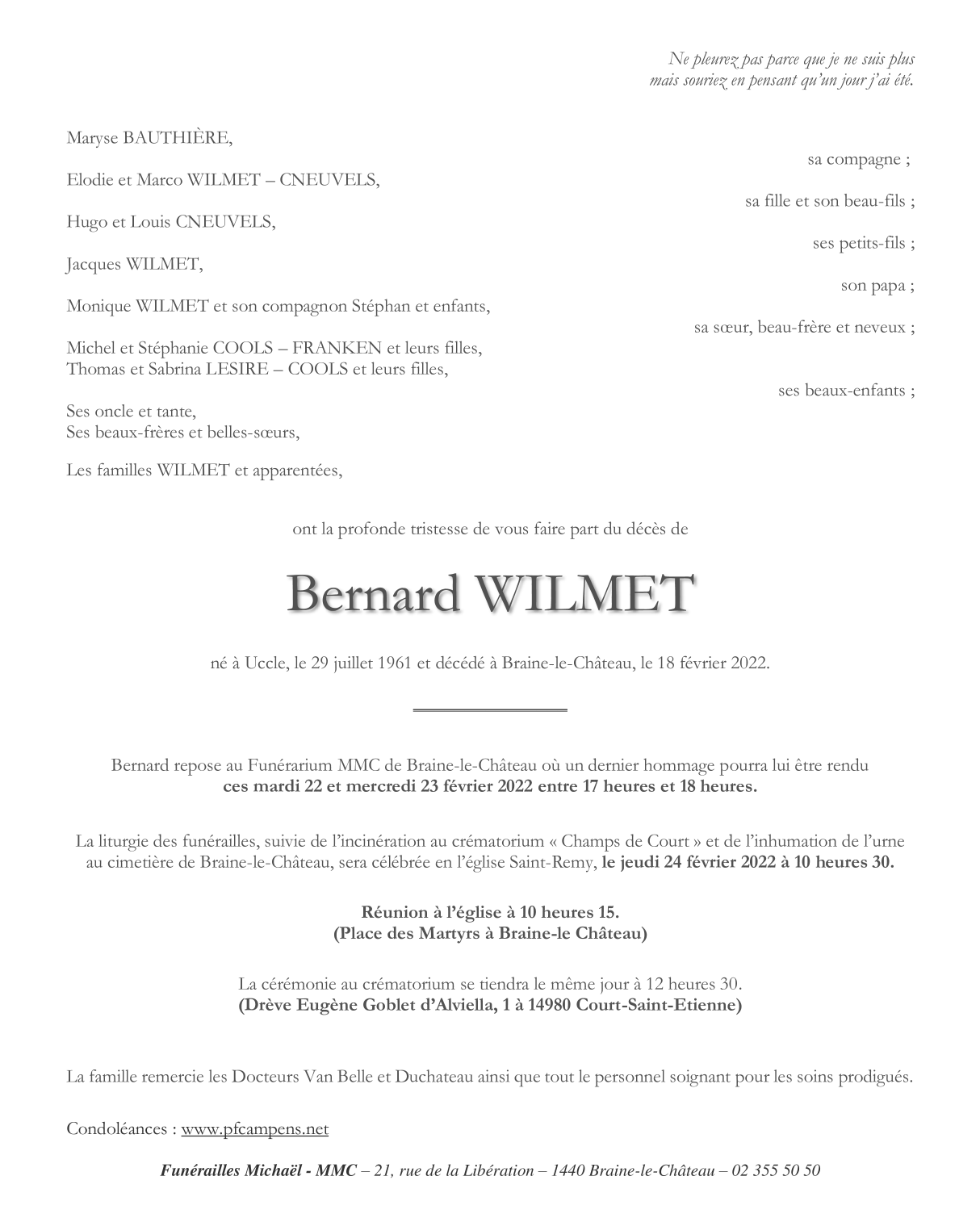 Overleden te Braine-le-Château (1440) op vrijdag 18 februari 2022 op 60-jarige leeftijd