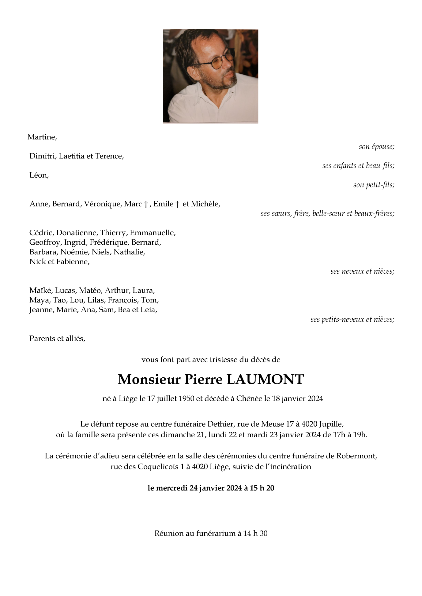 Décédé à Chênée (4032) le jeudi 18 janvier 2024 à l'âge de 73 ans