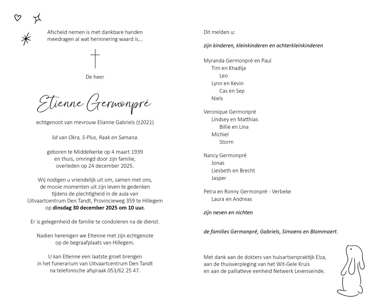 Overlijdensbericht binnenkant