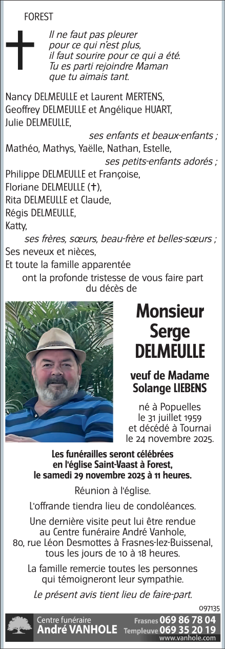 Overleden te Tournai (7500) op maandag 24 november 2025 op 66-jarige leeftijd