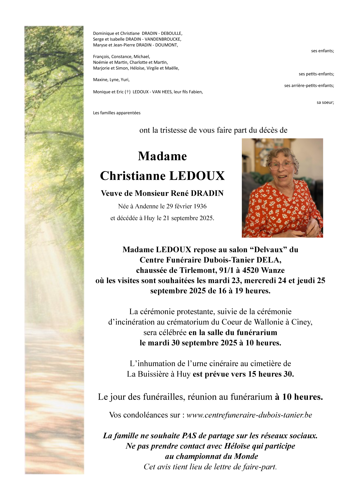 Veuve de Monsieur René DRADIN