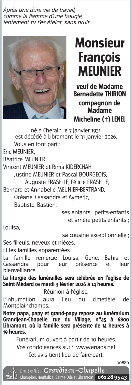 Fallecido en Libramont (6800) el sábado, 31 de enero de 2026 a la edad de 95 años