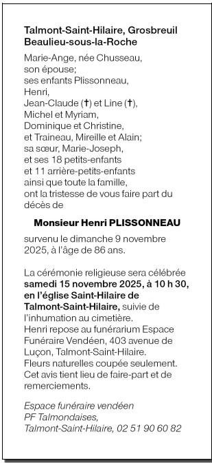 Died in Les Sables d'Olonne (85340, France) on 09 November 2025 at the age of 86 years