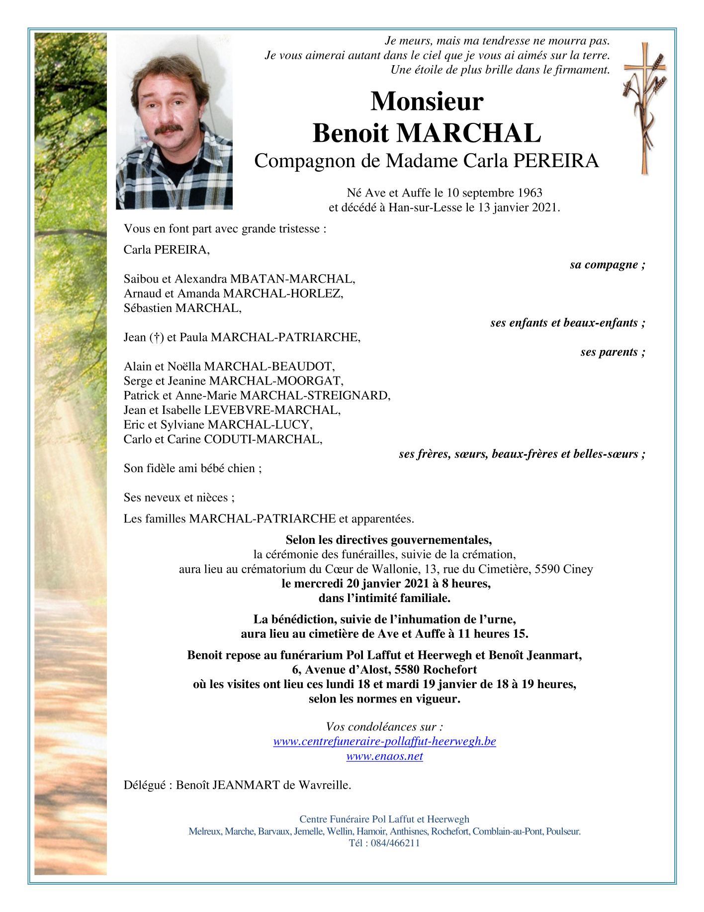 Fallecido en Han-sur-Lesse (5580) el miércoles, 13 de enero de 2021 a la edad de 57 años