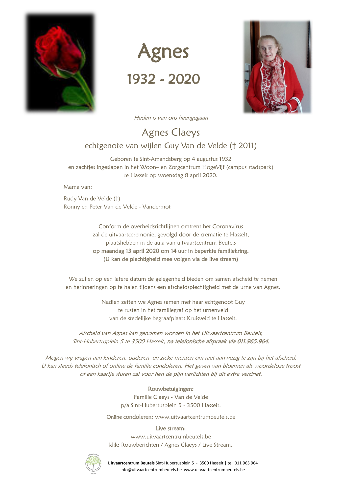 Died in Hasselt (3500) on 08 April 2020 at the age of 87 years