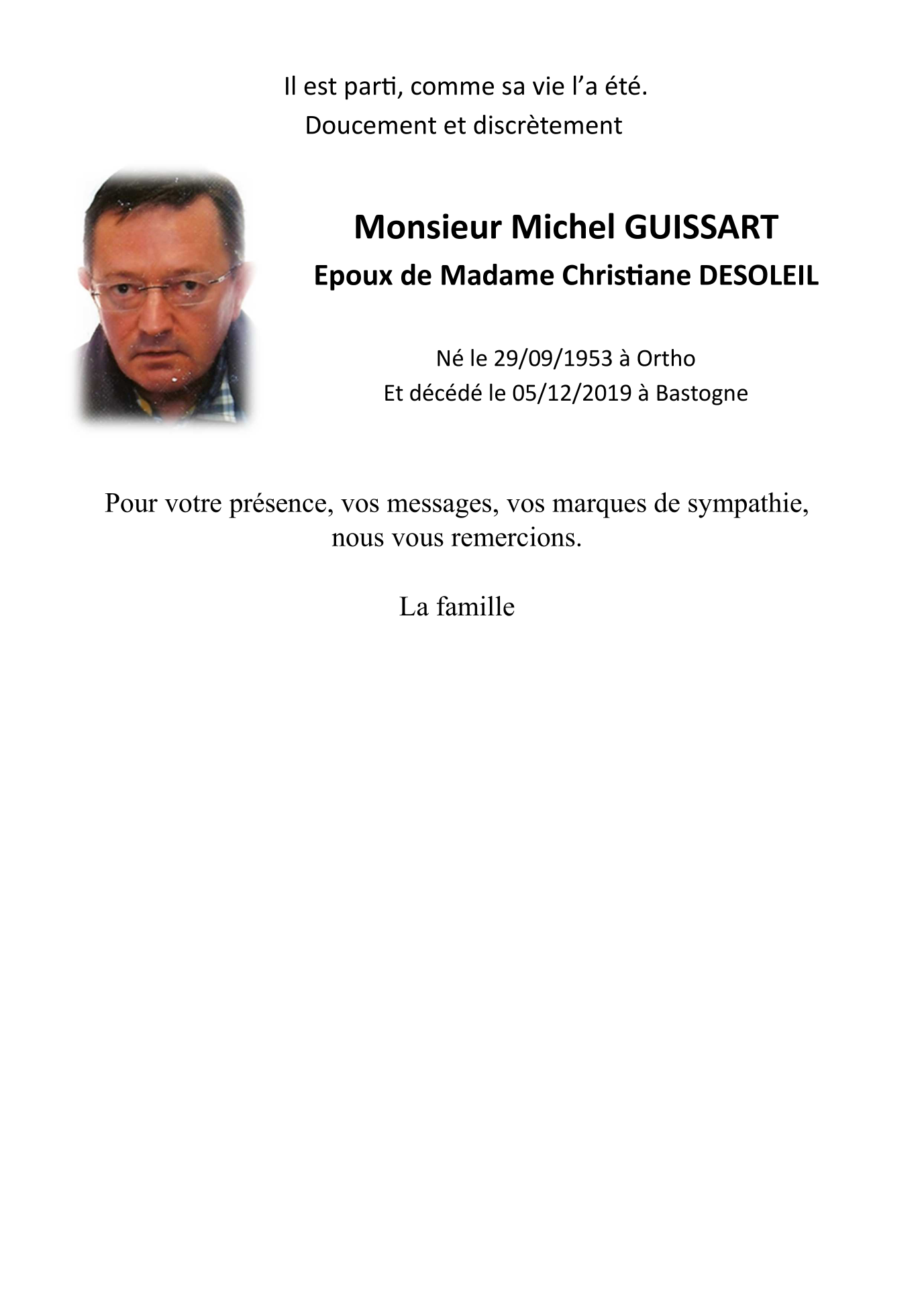 Décédé à Bastogne (6600) le jeudi 5 décembre 2019 à l'âge de 66 ans