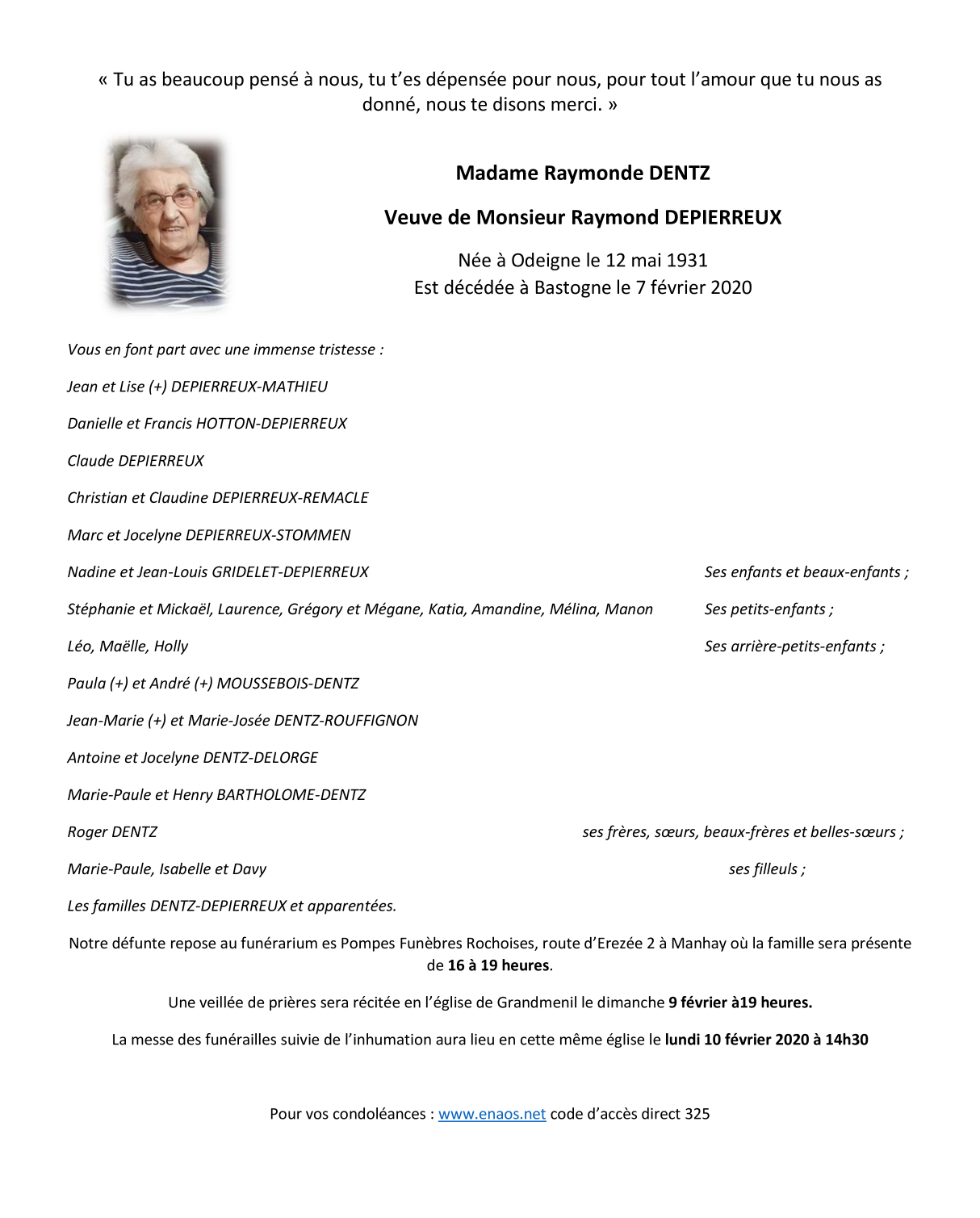 Died in Bastogne (6600) on 07 February 2020 at the age of 88 years